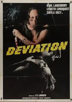 Deviation is a 1971 Swedish exploitation thriller film written and directed by José Ramón Larraz and starring Karl Lanchbury, Lisbet Lundquist, Malcolm Terris and Sibyla Grey. The plot follows a young couple in the English countryside who, after a car accident, are taken in by a mysterious taxidermist and his sister at their country house.