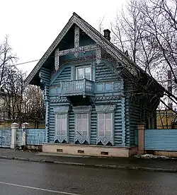 One notable building was the wooden Pogodinskaya Cottage (1856, architect Nikolay Nikitin), owned by historian Mikhail Pogodin, once the center of Moscow literary elite. Extant building is actually a side wing of a larger wooden estate. In 1882-1886, Tsaritsynskaya street acquired a two-story Archive Building, now the exhibition hall of Central Archive of Ancient Acts.[2]
