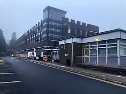 The hospital has its origins in the Pontypridd Union Workhouse which was completed in 1865.[1] An infirmary and isolation hospital were built on the site in the late 19th century.[1] The tunnel mouth of Pontypridd Graig railway station, which emerges into in the hospital car park, was last used in 1930.[2][3]