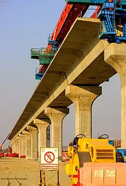 The deal for the construction of the MRT Line-6, costing US$2.8 billion, was signed by the government of Bangladesh with the Japan International Cooperation Agency on 20 February 2013.[21] Construction began on 26 June 2016 with an inauguration ceremony presided over by Prime Minister Sheikh Hasina.[22] Civil engineering work was done by the Italian-Thai Development Public Company Ltd. and China's Sinohydro Corporation Ltd. JV, and a Tokyo-based construction company developed the depot's land.[23][24]