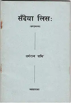 - Sandeyā Lisah (Newar: सँदेया लिस, lit. 'Tibet's reply') is an epic about an unfulfilled love affair between a Newar merchant in Lhasa and a Tibetan girl. Yami wrote it when he was in prison for the third time in 1950, and it was first published in 1952. A Nepali translation by Durga Lal Shrestha appeared in 2013 under the title Lhasa Bolchhe.[15]