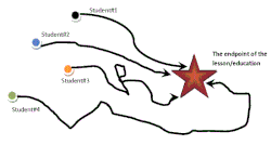 The teacher presents the endpoint of the lesson, for example, "At the end of the lesson, the students will be able to understand/master the following knowledge and skills." However, the teacher's method of leading students to the endpoint can be individualized both in instruction techniques and in time taken. Different students are "closer" or further" from the endpoint and require different strategies to get them there. Thus, for Socrates to manipulate Meno to the preset endpoint – what is virtue is not known and problematic – is not the same as manipulating Anytus to the same endpoint. It takes different and individualized instructional strategies.[33]