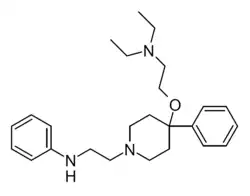 - ^ Hermans B, Verhoeven H, Janssen P (September 1970). "4-substituted piperidines. V. Local anesthetic 4-aminoalkoxy-4-arylpiperidines". Journal of Medicinal Chemistry. 13 (5): 835–8. doi:10.1021/jm00299a009. PMID 5458366.
