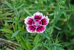 Dianthus chinensis, commonly known as rainbow pink[1] or China pink is a species of Dianthus native to northern China, Korea, Mongolia, and southeastern Russia.[2] It is a herbaceous perennial plant growing to 30–50 cm tall.
