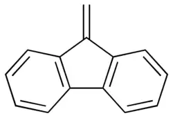 9-Methylene-fluorene or dibenzofulvene (DBF) is a polycyclic aromatic hydrocarbon with chemical formula (C6H4)2C=CH2. It is best known as one product from deprotection of the Fmoc group.[1] It can be prepared by treatment of 9-hydroxymethylfluorene with strong base.[2]