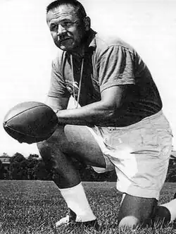 After graduating from Colgate in 1936, he was an English teacher and the head football coach at Kenmore High School in Buffalo, New York. In 1939, he played summer baseball in the Cape Cod Baseball League, playing catcher for the league's Harwich Mariners.[2][3][4] From 1936 through 1946, his Kenmore teams compiling an outstanding record of 50–7 capturing Niagara Frontier League championships in 1943, 1944 and 1945.