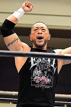 While in Michinoku Pro Wrestling,[4] he formed a stable called Kai En Tai DX with Taka Michinoku, Shoichi Funaki, Men's Teioh and Shiryu; Togo, along with some of his Kai En Tai teammates, was briefly a member of The Blue World Order in ECW. Throughout his career, Togo has been a part of several stables in the Japanese independent circuit: most famously the original Kai En Tai in Michinoku Pro Wrestling, but also the Legion of Violence (LOV) in Osaka Pro Wrestling, with Black Buffalo and Daioh Quallt, the Far East Connection with Gedo, Jado, Masao Orihara, and Ikuto Hidaka in various promotions; and most recently New Wrestling Aidoru (NωA) with Makoto Oishi, Mao and Shunma Katsumata in DDT.