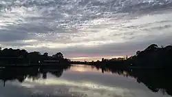 Dickinson Bayou is located in southeast Texas in the San Jacinto-Brazos Coastal Basin.[1] Dickinson Bayou rises two miles northeast of Alvin in northwestern Galveston County (at 29°29' N, 95°14' W) and flows east for over 20 miles to its mouth on Dickinson Bay and Galveston Bay, just south of San Leon and a mile east of the Southern Pacific Railroad (at 29°28' N, 94°57' W). It traverses flat to rolling prairie surfaced by dark, commonly calcareous clays that support mesquite, grasses, and cacti. In the lower reaches of the bayou the soil changes to sandy and clay loams that support scrub brush, hardwoods, and pines.
