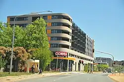 Zoning changes adopted as a result of the 2011 Dickson Centre Master Plan,[1] permit new buildings up to 12 metres (three storeys) high on the parking areas in Section 30 around the shopping centre, except for an area next to Antill Street where 24 metre high buildings are permitted. In the area to its west and south (north of Sullivans Creek and east of Challis Street, including the Woolley St area), 21 metre (six storey) high buildings are permitted.[2] A new Coles and 140 apartments opened in September 2023 on the former public carpark north of Woolworths supermarket.
