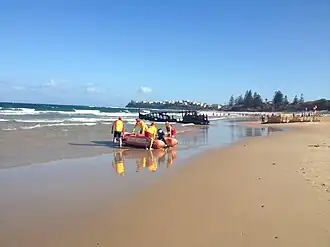 Dicky Beach is a patrolled beach, and is home to the Dicky Beach Surf Life Saving Club. It has been awarded numerous awards, including the 'DHL Queensland Surf Life Saving Club of the Year' in 2009. There is also a caravan park in the area.