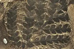 | Dicroidium zuberi leaf from the Early Triassic Gosford Formation of Terrigal, NSW, Australia. | |