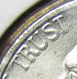 Die deterioration doubling is a result of a few simple causes, but it can be difficult to positively identify. There are a number of different features which appear similar, but the characteristic traits of each are easy to identify with practice. Die deterioration doubling is often mistaken for hub doubling. The causes of the two types of doubling are different, but their appearance on the finished coin is often similar. Die deterioration doubling appears most often around the mintmark and date because they are alone in the field. When it occurs in other features, like an image of a bust, it looks more like a weak strike than doubling.