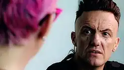 In August 2019, a video of Die Antwoord filmed by Crossman in 2012 resurfaced, showing the duo at Future Music Festival physically assaulting Hercules and Love Affair frontman Andy Butler, who is a gay man, and chasing after him while yelling, "Run, faggot, run," before telling a fabricated story to festival security about Butler groping Visser in a bathroom stall.[165][166] Soon after the video resurfaced, they were dropped from the lineups of the American music festivals Life is Beautiful, Louder Than Life, and Riot Fest, the last of which saw them replaced with Wu-Tang Clan.[167][168] Ninja wrote in a Facebook post that Crossman "cleverly edited" the video to make it look like a homophobic hate crime despite his own participation in assaulting Butler.[169] Die Antwoord's House of Zef Tour, which was scheduled in the United States from September to October 2019, was postponed in September 2019, ostensibly due to their occupation with other projects.[170][171] Chelsey Norris of the Dallas Observer surmised that the tour's postponement was instead due to the resurfaced video involving Butler.[164]