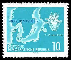 The Baltic Sea must be a sea of peace (German: Die Ostsee muss ein Meer des Friedens sein; Russian: Балтийское море должно быть морем мира) is a political slogan and a recurring motto, it was particularly used in the German Democratic Republic (GDR) and is refreshed in modern times by the peace movements. It expressed the desire for peaceful coexistence and cooperation among the Baltic Sea littoral states and was of particular importance in the context of the Cold War.[1]