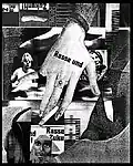 Gaber's approach to Die Plage draws inspiration from German photomontage pioneers Hannah Höch, John Heartfield, and George Grosz, whose influence is acknowledged in several canvases within the series. Höch, Heartfield, and Grosz, as artistic collaborators in the avant-garde Dadaist and New Objectivity movements, were credited with inventing the "anti-art" technique of pasting together pre-existing photographs, text, and clippings.[10] Several of these works are themselves cut and pasted into Die Plage, including the notable example of Adolf Hitler's head in Heartfield's Adolf, the Superman: Swallows Gold and Spouts Tin (1932).
