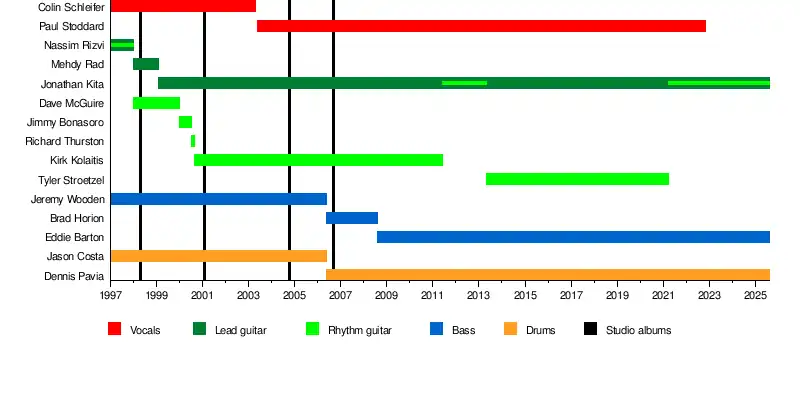 After the departure of guitarist and founding member Nassim Rizvi, his position was temporarily filled by a number of friends of the band including Buz McGrath and Ken Susi of the band Unearth. Jonathan Kita would be named the permanent replacement on lead guitar in February 1999.