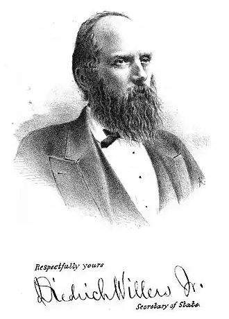 Diedrich Willers Jr. (November 3, 1833 – June 25, 1908) was a Democratic politician from Varick, New York who served as Secretary of State of New York. Born to a working class German immigrant family, his political fortune was a notable example of the effect of civil service reform.[1]