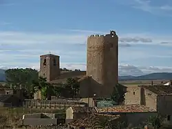 Side view of the Church of Our Lady of the Assumption and Tower in Hinojosa del Campo, the town where Diego de Medrano was born.
