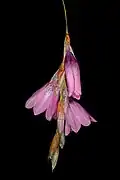 Dierama igneum, the fiery wandflower, is a species of flowering plant in the iris family Iridaceae, native to south east Africa.[1] It is a slow-growing,[2] bulbous perennial growing to 1 m (3.3 ft) tall from clumps of grass-like leaves. Evergreen in its native Africa, it may become herbaceous in colder regions. The trumpet shaped flowers are borne on long, arching stems, and are normally salmon pink in colour. The specific epithet igneum, meaning "glowing" or "fiery", may refer to these arching sprays of blooms.[2]
