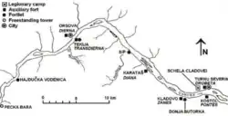 The Roman city is today 6 m beneath the Danube after the Iron Gates Dam raised the water level.[4] Drawings from the 18th century show that Roman Dierna had a military port near the fort and an extensive civil port along the banks of the Danube. The Roman settlement at the confluence of the river Cerna with the Danube developed as a result of the port that was established here probably in the Flavian dynasty when the two fleets that controlled river navigation were created: Classis Flavia Pannonica and Classis Flavia Moesica.[5][6]
