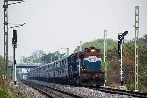 ![]() Ratlam-based WDM-3A hauling the Ajmer-Hyderabad Urs special train | |