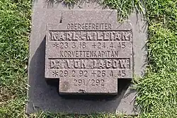 He stayed in a hospital in Leipzig until March 1945 when he and his family moved to Constance.[46] In April 1945 he was sent on a diplomatic mission to the Italian Social Republic, heading for the village of Fažana that served as the headquarters of the German military occupation authority in Italy.[46] The precise orders given to Jagow by Ribbentrop have been lost.[46] Along the way to Italy, he stopped in South Tyrol in the city of Meran (today, Merano, Italy), which had been under German occupation as part of the Operational Zone of the Alpine Foothills since September 1943. On 26 April 1945, Jagow committed suicide in the house of the German ambassador to the Italian Social Republic, Rudolf Rahn, shooting himself in the head.[46] His suicide note stated that he did not want to live in a world controlled by Jews, which is what he believed would be the situation after Germany's defeat.