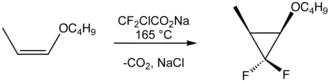 - CF2ClCO2Na → CO2 + NaCl + CF2