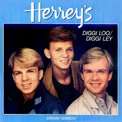 "Diggi-Loo Diggi-Ley" is a song recorded by Swedish trio Herreys – brothers Per, Louis, and Richard Herrey – with music composed by Torgny Söderberg and Swedish lyrics written by Britt Lindeborg. It was produced by Anders Engberg and Torgny Söderberg. It represented Sweden in the Eurovision Song Contest 1984, held in Luxembourg, winning the contest.