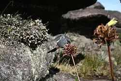 This bird usually forages alone or in pairs, but sometimes joins small mixed species groups. It feeds on insects as well as nectar which it extracts by probing and piercing flowers.[2] The nest is constructed of grasses and fine twigs and is cup-shaped. It is built among rocks, often under an overhang.[3]