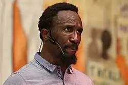 He has three performance poetry videos,[7][8][9] a live poetry show (NSW – Night of the Spoken Word), now in its fifth year, and three theatre productions: The "Made in Nigeria" Poetry Show was shown on stage nine times – in Abuja, Lagos, Enugu, Benin, Bonny, Maiduguri, Yola, Jos, and Ile-Ife – between September 2016 and October 2018.[10][11][12] "Let's be honest" and "Man-made gods" had its stage debut on October 1, 2018.