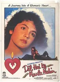 Dil Hai Ke Manta Nahin emerged as a box office success and boosted the career of newcomer Pooja Bhatt, while cementing Aamir Khan's status as a leading movie star.[4] The film's soundtrack, with music by Nadeem–Shravan, was also praised.[5]