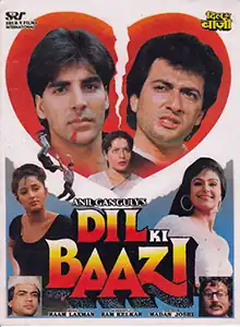 Dil Ki Baazi (transl. Heart's Bet) is a 1993 Indian Hindi action film directed by Anil Ganguly.[1] A remake of Ganguly's own Bengali film Balidaan (1991),[2] the film stars Akshay Kumar, Ayesha Jhulka, Avinash Wadhavan, Farheen in lead roles, with Rakhee Gulzar reprising her role from the original.[3]