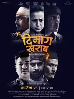 Dimag Kharab (Nepali: दिमाग खराब) is a 2023 Nepali film directed by Nischal Basnet from a screenplay by Aakash Baral under the banner of Cinema Art Pvt.Ltd.[4][5][6] It was produced by Raunak Bikram Kandel. Released on November 10, 2023,[7] starring Khagendra Lamichhane, Dayahang Rai, Swastima Khadka, Arpan Thapa, and Bijay Baral.[8][9][10] Prior to the release of the movie, the promotional song titled 'Jhamke Jhamaa Jham' with lead vocals Namrata Kafle and Sumit Khadka was released on October 2, 2023.[11][12]