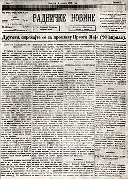 - The labor movement in Serbia (Radnički pokret u Srbiji) 1909.