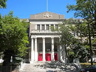 Dimner Beeber Middle School was a historic middle school located in the Wynnefield neighborhood of Philadelphia, Pennsylvania. It is part of the School District of Philadelphia. The building was designed by Irwin T. Catharine and built in 1931–1932. It is a three-story, 15 bay, brick building on a stone basement in the Classical Revival-style. It features a projecting center section and projecting end bays, projecting brick pilasters with stone bases and caps, moulded cornice, and balustraded parapet.[2]