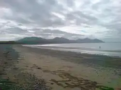 Dinas Dinlle has a large sand and pebble beach with vast areas of sand from mid-tide level. The foreshore consists of natural pebble banks. The popular beach offers views towards the Llŷn Peninsula (Penrhyn Llŷn) and towards Ynys Llanddwyn (Llanddwyn Island) on Anglesey. The area is a designated Site of Special Scientific Interest (SSSI).