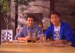 ![]() Scott Blakeman (left) and John Sloman (right) playing Mitch and Steve in the commercial, respectively. | |