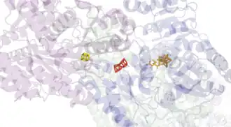 - ^ a b Wolle D, Dean DR, Howard JB (November 1992). "Nucleotide-iron-sulfur cluster signal transduction in the nitrogenase iron-protein: the role of Asp125". Science. 258 (5084): 992–5. Bibcode:1992Sci...258..992W. doi:10.1126/science.1359643. PMID 1359643.
