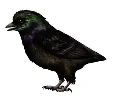 In a 2020 study, Eliason and Clarke determined that the feathers on the head, tail, and wing primaries of the Eocene lithornithid Calciavis were iridescent, likely glossy black. Additionally tested feathers from the fossilized wings were black.[17]