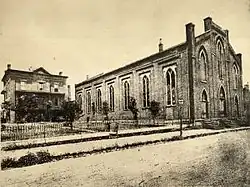 By the beginning of Maes' tenure as bishop, St. Mary's Cathedral had fallen into disrepair.[11] In 1890, he purchased property in Covington to build a new cathedral[12] To design the building, Maes hired a Detroit architect who based his plans on Notre-Dame de Paris. The cornerstone was laid in 1895.[12] Although parts of the cathedral remained unfinished past his death, Maes dedicated the new cathedral in 1901 and opened it for services.[12] By 1914, the diocese had a population of 60,000 Catholics served in 57 parishes, and 25 missions by 85 diocesan and religious priests.[10] Maes died in 1915.
