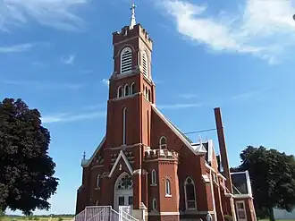 St. Anthony's Parish in Davenport was established around 1837 by Dominican missionary Samuel Mazzuchelli. Its church was built in 1838 on land donated by French-Potawatomi entrepreneur Antoine Le Claire. The building served as a church, city hall, courthouse, schoolhouse, public forum, and gathering place for the citizens of Davenport.[2]