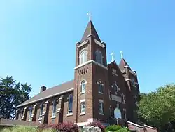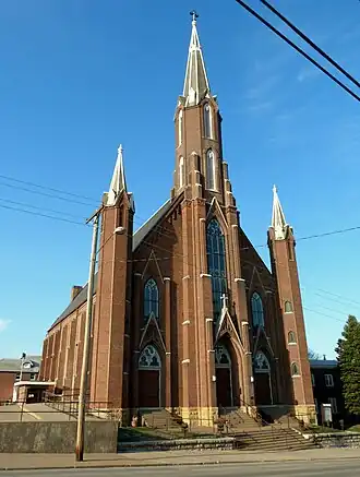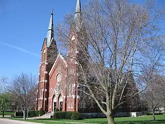 In 1839, French missionary Jean-Antoine-Marie Pelamourgues was named the first resident pastor of St. Anthony's. His duties included attending the communities of Muscatine, Burlington, Iowa City, Columbus Junction, DeWitt, Lyons, and Stephenson, Illinois, across the Mississippi River from Davenport.[3] Pelamourgues studied to improve his English; when German immigrants began to arrive, he took up that language as well. He helped establish the parish of St. Kunigunda in Davenport, where services were held in Latin and German. When the German pastor at St. Kunigunda refused to serve the needs of Irish immigrants who settled in the west end, Pelamourgues built St. Mary's two blocks away.