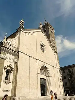 The original cathedral in Luni had been dedicated to the Virgin Mary. In December 1187, Pope Gregory VIII granted the petition of the Bishop and Canons of Luni to transfer the episcopal seat to Sarzana, but he died before the transaction could be completed. The transfer was finally accomplished with the consent of Innocent III in 1204.[19] The Cathedral church in Sarzana was dedicated to S. Basilio, and later to the Assumption of the Body of the Blessed Virgin Mary into Heaven.