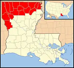 The Diocese of Shreveport covers an area of 28,825 square kilometres (11,129 sq mi).[1] The largest cities in the diocese are Shreveport, Monroe, Bossier City and Ruston.