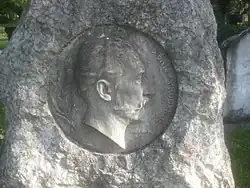He is buried in Section 5 (Abteilung 5) of the Pragfriedhof cemetery in Stuttgart, together with his wife Silly Pruckner (1837–1901). On his gravestone is a bronze relief of his head made by the sculptor Karl Donndorf in 1893.