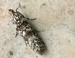Dioryctria sylvestrella, the new pine knot-horn[2] or maritime pine borer,[3] is a moth of the family Pyralidae. It is found in Europe, parts of Asia and North Africa. The adult is a small mottled brown and white insect with a wingspan of 28 to 35 mm (1.1 to 1.4 in). The moth flies in a single generation from June to October[1] and is a pest of maritime pine and several other species of pine, on which the caterpillars feed.