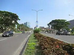 Macapagal Boulevard, also known as President Diosdado Macapagal Boulevard and Macapagal Avenue,[1] is an eight-lane road in Metro Manila, Philippines, running parallel to Roxas Boulevard from the Cultural Center of the Philippines Complex in Pasay to Asia World City in Parañaque. It is named after former Philippine President Diosdado Macapagal. This road has three major bridges, crossing the 'channels', of which the largest is the Libertad Channel, where the Libertad Water Pumping Station is situated. After the intersection reconfiguring around EDSA to relieve traffic, Macapagal Boulevard is now often used to access the SM Mall of Asia to the north and Cavite to the south. It is also the main major road in Metro Manila's reclamation area, Bay City.