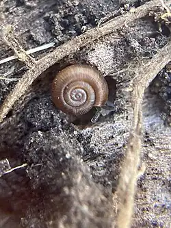 The shell of mature snails is 1.6–1.8 mm in height, with a diameter of 3.2–3.5 mm, discoidal with a flat to slightly sunken spire, with rounded whorls, impressed sutures and widely spaced radial ribs. It is uniformly coppery-brown in colouration. The umbilicus is widely open. The aperture is ovately lunate. The animal has a white body.[1]