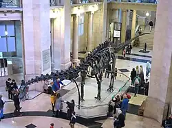 The London cast of Dippy is a plaster cast replica of the fossilised bones of a Diplodocus carnegii skeleton, the original of which – also known as Dippy – is on display at Pittsburgh's Carnegie Museum of Natural History. The 26-metre (85 ft) long cast was displayed between 1905 and 2017 in the Natural History Museum in London, becoming an iconic representation of the museum. It began a national tour of British museums in February 2018. Dippy returned to London in June 2022,[1] and then moved to Coventry as a long-term loan to the Herbert Art Gallery and Museum in 2023.[2]