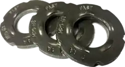 DTIs within the RCSC specification section 8.2.4 are described thus: "ASTM F959 direct tension indicators are recognized in this Specification as a bolt-tension-indicating device. Direct tension indicators are hardened washer shaped devices incorporating small arch-like protrusions on the bearing surface that are designed to deform in a controlled manner when subjected to compressive load."[4]